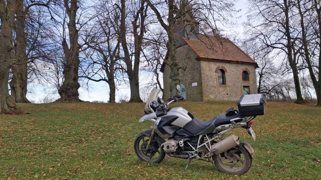 Der Winter steht vor der Tür, keine Frage: Der Blick aus dem Fenster zeigt weiße Flocken, der Garten ist weiß überzuckert. Kein Motorradwetter, man braucht eher einen warmen Mantel, lateinisch cappa, Deminutiv capella. Was wiederum ursprünglich jenen Ort in Paris bezeichnete, an dem die berühmte Mantelhälfte des heiligen Martins (dessen Ehrentag ja erst zwei Wochen zurückliegt) als Reliquie aufbewahrt wurde, heute als “Kapelle” für kleine Andachtsräume steht. Eine gute Gelegenheit für eine kurze Würdigung dieser kirchenbaulichen Kleinode.